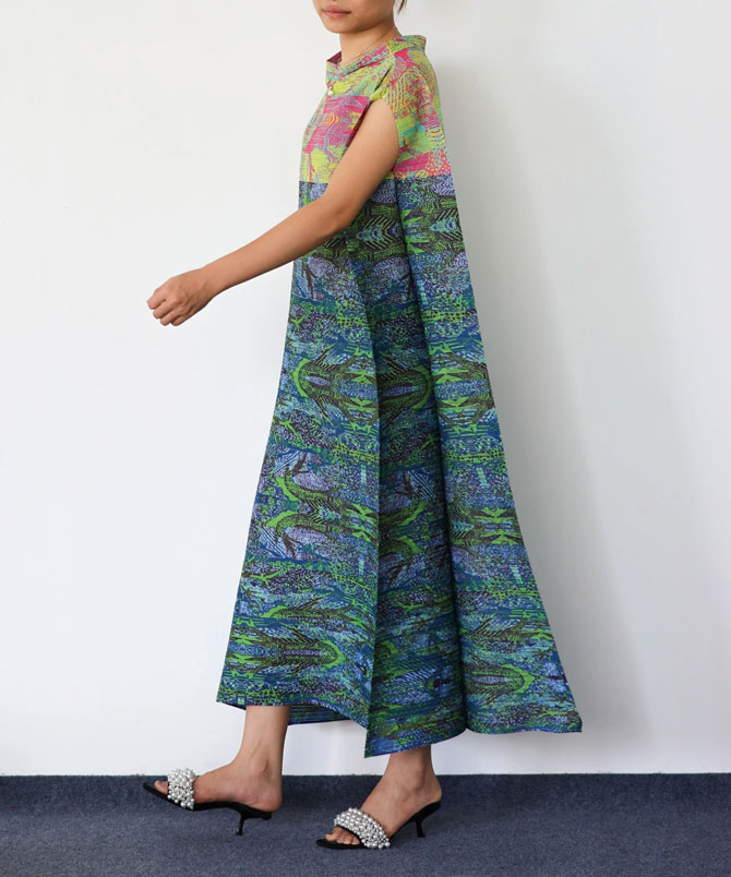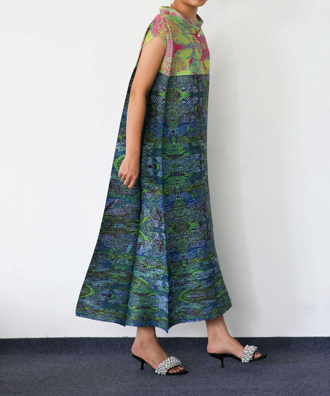 Meet the Dreamscape Miyake Dress, a stunning piece that brings art and comfort together in one effortless look. This Miyake-style dress is for women who love to stand out quietly. It’s bold, yet calm; colorful, yet easygoing. Its free-flowing silhouette drapes beautifully on every body shape, letting you move with ease and confidence.