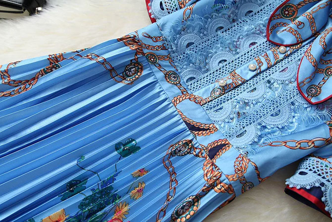 With a beautiful blue base, delicate floral prints and soft pleats that sway with every move, this Floral Elegant Pleated Dress is pure romance in fabric form. The lace details and bow neckline add a lovely vintage touch, while the flowy fit keeps it fresh and modern.