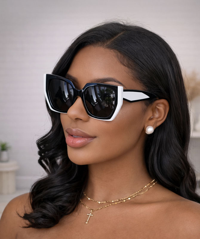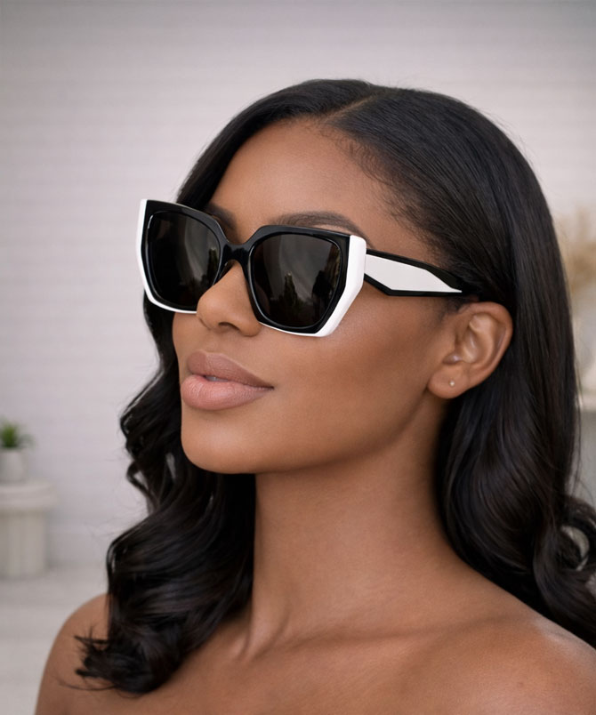 These Geo Monochrome Sunglasses are that effortlessly cool blend of art and fashion. With their sharp geometric shape, black-and-white contrast frame, and oversized fit, these sunnies are pure confidence in accessory form.