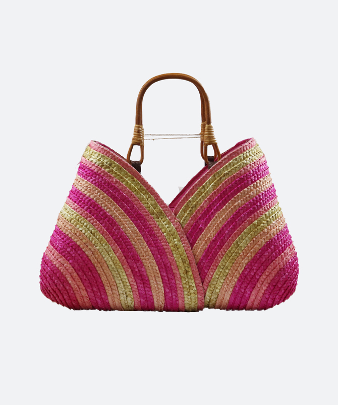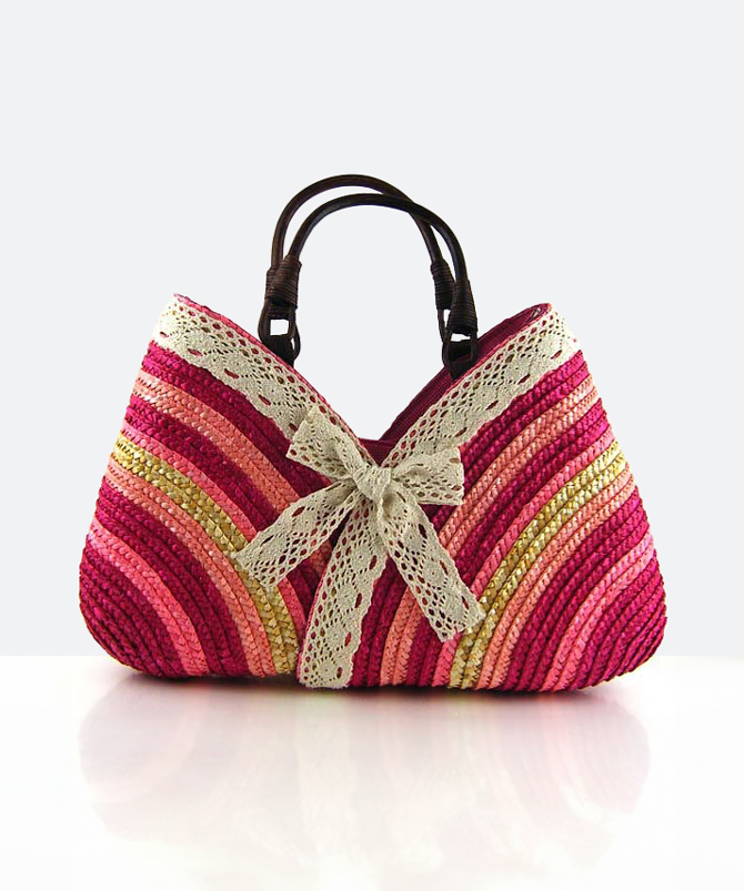 Pink Lace-on Stripes Straw Bag - Torfeo Pink Lace-on Stripes Straw Bag - Torfeo Green and Pink Lace-on Stripes Straw Bag - Torfeo
