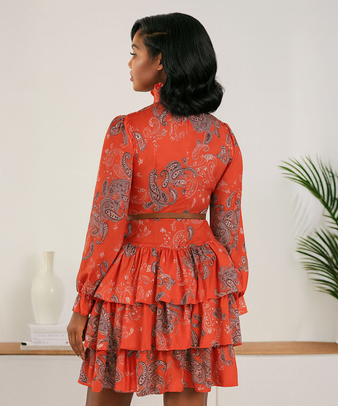 A stunning dress that is both comfortable and stylish and sure to turn heads with its high tie-neck and tiered skirt design. Dress it up with heels or keep it casual with flats. It can also be paired with your favorite accessories, such as sunglasses, hats and more.