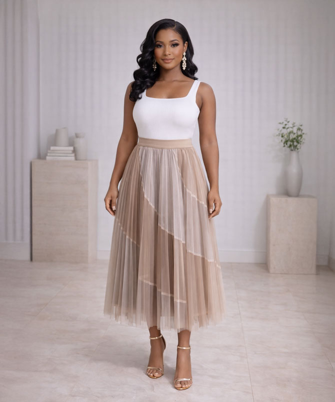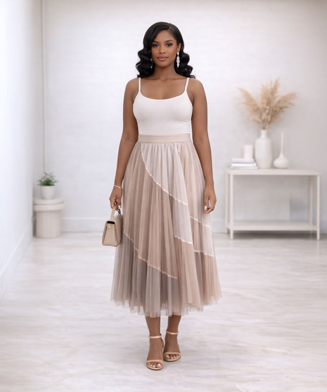 Nude Mesh Pleated Skirt - TORFEO Nude Mesh Pleated Skirt - TORFEO Nude Mesh Pleated Skirt - TORFEO Mesh Pleated Skirt - TORFEO