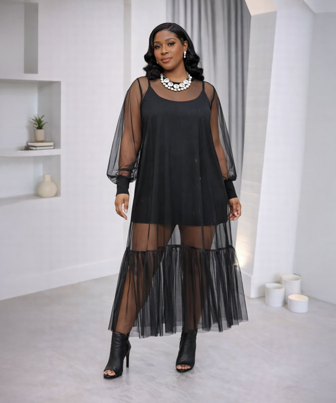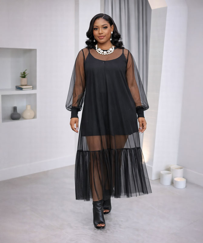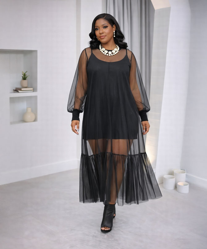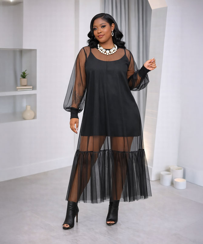 Be the first to review “Mesh Ruffles Two-Piece Dress”