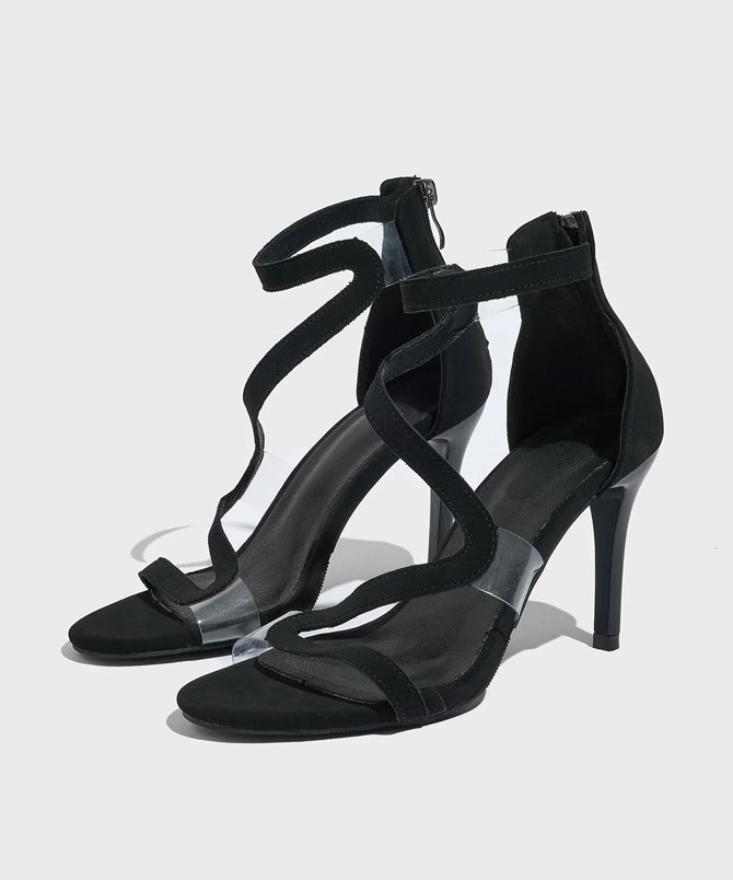 The highlight is the sleek curved strap that wraps gracefully across the foot, creating a flattering silhouette that draws the eye and elongates the legs. The delicate ankle strap keeps you secure, while the slim stiletto heel gives you just the right amount of height to carry yourself with poise and grace.