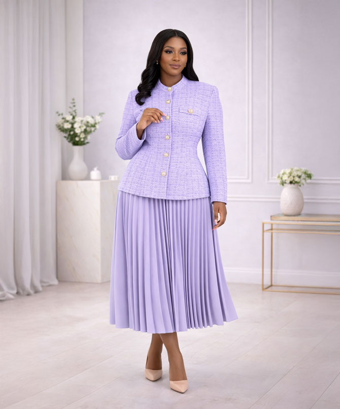 This set is perfect for church, office days, brunch meetings, birthdays, bridal showers, and any moment when you want to feel put together and feminine. Wear them together for a complete statement look or style the blazer with tailored trousers and the skirt with a soft blouse. You get versatility and elegance in one beautiful purchase.
