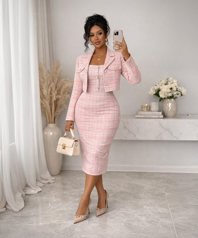 The Parisian Blush Tweed Set is one of those pieces that make you feel like the most confident version of yourself the moment you step out the door.
