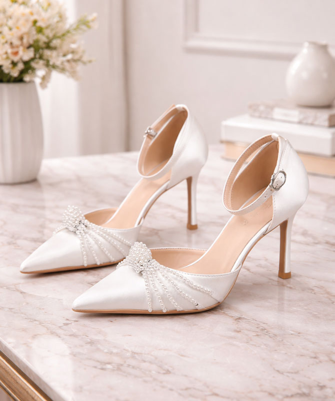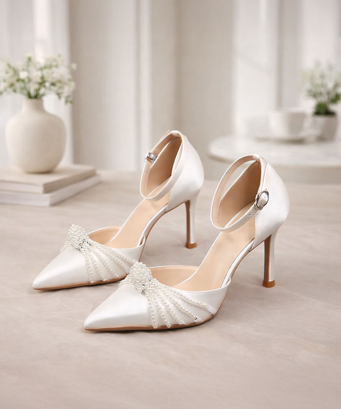 Designed with a sleek stiletto heel, these shoes offer a perfect blend of glamour and poise. Crafted from premium satin fabric and accented with meticulously placed faux pearls, these heels promise durability and unparalleled refinement. Whether you’re walking down the aisle, attending a gala, or celebrating a momentous event, the String Pearls White Shoes are your ultimate statement piece.