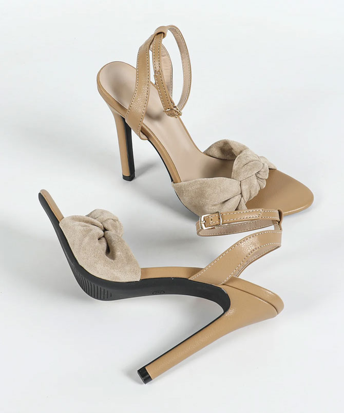 Crafted with a mix of velvety suede on the knot strap and smooth faux leather along the ankle, these heels bring together texture and charm. The slim stiletto heel gives just the right lift to elongate your legs while the delicate ankle strap keeps you secure and confident with every step.